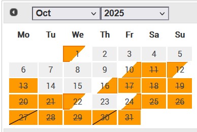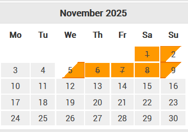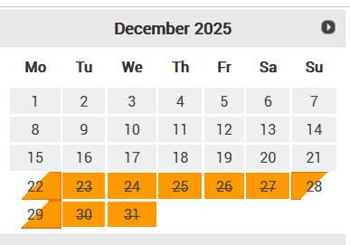FOGLALHATÓ IDŐPONTOK (szürkével)